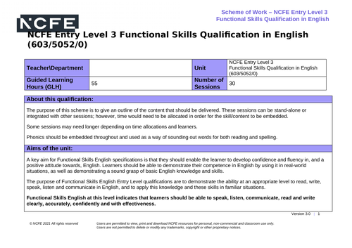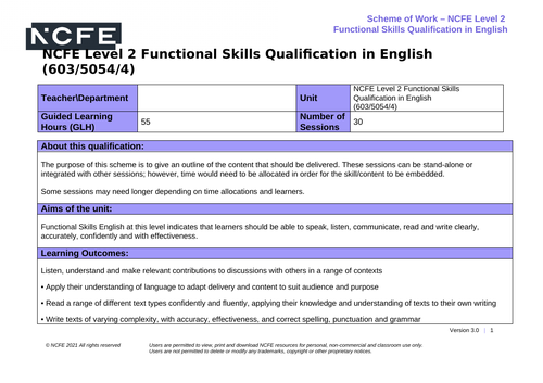 Ncfe Entry Level 2 Functional Skills Qualification In English 603 5056 8 Teaching Resources